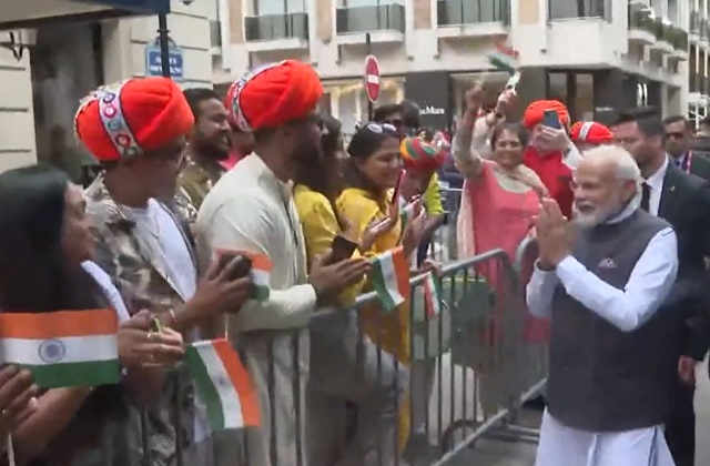 पेरिस पहुंचने पर भारतीय समुदाय के लोगों से मिले पीएम मोदी, 'भारत माता की जय' और 'वंदे मातरम' के नारे लगे
