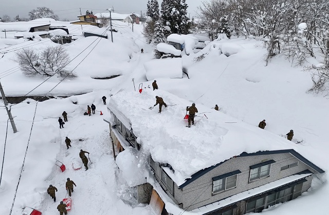 जापान के मौसम विभाग ने कहा कि शीतकालीन दबाव के एक पैटर्न के कारण जापान सागर के किनारे भारी बफर्बारी हुई है। सरकारी प्रसारक एनएचके ने कहा कि आओमोरी जनपद में 4.3 मीटर से ज्यादा बर्फ इकट्टा हो गई है, जबकि निगाता के कई इलाकों में तीन मीटर तक बर्फ जमा हुई है।
