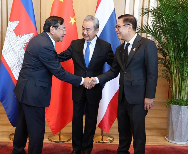 International Desk: कंबोडिया और थाईलैंड के बीच हिंसक सीमा विवाद में एक मजबूत मध्यस्थ की भूमिका निभाने की कोशिश कर रहे चीन के विदेश मंत्री ने सोमवार को दोनों दक्षिण-पूर्व एशियाई देशों के विदेश मंत्रियों के साथ बैठक की। विवादित सीमा के उत्तर में स्थित चीन के युन्नान प्रांत में यह त्रिपक्षीय बैठक आयोजित की गई। यह बैठक थाईलैंड और कंबोडिया की बीच हफ्तों से जारी लड़ाई को समाप्त करने के लिए एक नए युद्धविराम समझौते पर हस्ताक्षर करने के दो दिन बाद हुई। दोनों देशों के बीच सीमा विवाद को लेकर हुई लड़ाई में 100 से अधिक लोग मारे गए और सीमा के दोनों ओर से लाखों लोगों को विस्थापित होना पड़ा।