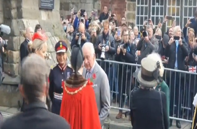 सोशल मीडिया पर वायरल वीडियो में देखा जा सकता है कि वे दोनों इस घटना से बिल्कुल बेफिक्र नजर आ रहे हैं। जब वे लोगों से मिल रहे थे, तो एक के बाद एक तीन अंडे उनकी तरफ फेंके गए। पुलिस ने इस मामले में एक शख्स को हिरासत में लिया है, जिसने कथित रूप से अंडे फेंके थे। चार्ल्स और कैमिला अपनी दिवंगत मां महारानी एलिजाबेथ द्वितीय की एक प्रतिमा का अनावरण करने के लिए उत्तरी शहर में थे।