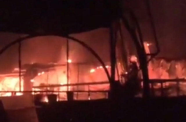 दमकल की गाड़ियों ने कड़ी मेहनत से आग बुझाई