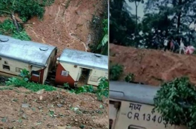 गोवा में आई तबाही का शिकार हुई पैसेंजर ट्रेन, पटरी से उतरकर धंस गई जमीन पर