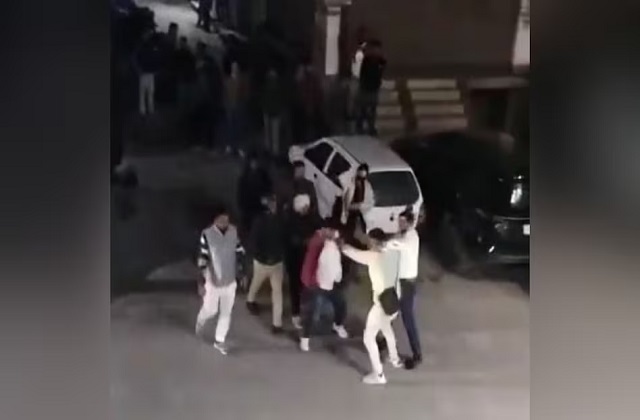 कुछ ही देर में गाली-गलौज के बाद दोनों युवक एक-दूसरे पर टूट पड़े। किसी ने बेल्ट से हमला किया तो किसी ने मुक्कों और लातों का सहारा लिया। सड़क के बीच इस झगड़े को देखकर राहगीर रुक गए और मौके पर भारी भीड़ जमा हो गई। लोगों ने बीच-बचाव की कोशिश की, लेकिन काफी देर तक हालात काबू में नहीं आए।