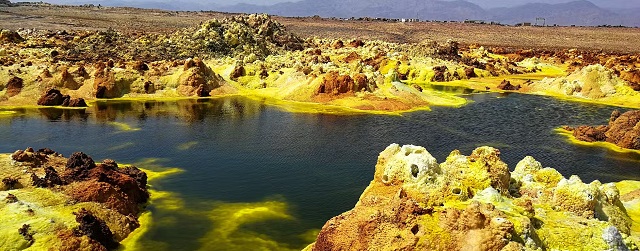 दानाकिल की सबसे खास पहचान हैं यहां की रंगीन झीलें और जमीन। यहां की मिट्टी और झीलें पीले, हरे, नीले और लाल रंगों में चमकती हैं। इसका कारण है – यहां मौजूद नमक और खनिज, जो मैग्मा और एसिड के संपर्क में आने पर रासायनिक प्रतिक्रिया (Chemical Reaction) से इन अनोखे रंगों की परतें बनाते हैं। इसे देखकर लगता है जैसे धरती पर किसी कलाकार ने रंग बिखेर दिए हों।