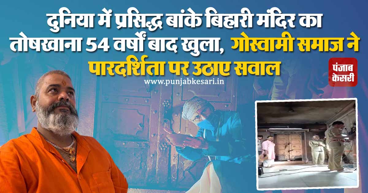 दुनिया में प्रसिद्ध बांके बिहारी मंदिर का 54 वर्षों से बंद पड़ा तोषखाना शनिवार को सुप्रीम कोर्ट के निर्देश पर हाई पावर कमेटी की निगरानी में खोला गया।श्री आचार्य महामंडलेश्वर गोस्वामी अनंत श्रीहरिदास सहित सारे गोस्वामी समाज ने इस प्रक्रिया की पारदर्शिता पर सवाल उठाए हैं। pic.twitter.com/HqLlXtpRlB