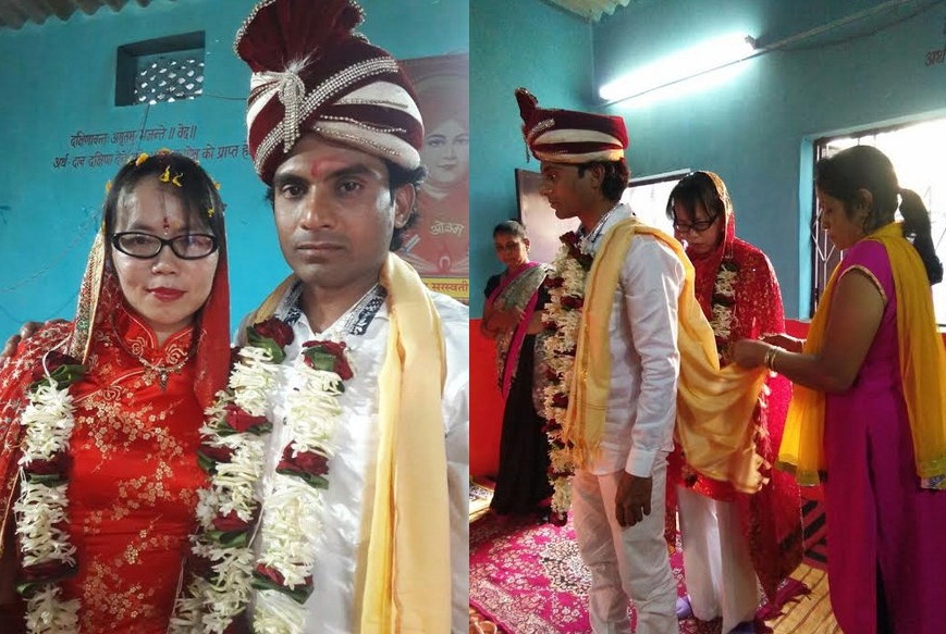 कोरबाः छत्तीसगढ़ के काेरबा में रामपुर स्थित आर्य समाज मंदिर एक अनोखी शादी का गवाह बना। यहां ताइवान की रहने वाली लियाव फूट्सू (44) और जमशेदपुर (झारखंड) के रहने वाले सुरेश कुमार पॉल (37) शादी के बंधन में बंधे। जमशेदपुर में टाटा ग्रुप की टीसीआईएल में कार्यरत सुरेश उर्फ लाजर की अरेंज मैरिज पहले ही हो चुकी है। इस शादी से उनका एक बेटा और एक बेटी भी है। लेकिन पिछले चार साल से पति-पत्नी अलग रह रहे हैं। एक साल पहले उनका तलाक भी हो गया तो बच्चे अपनी मां के पास चले गए। वहीं, ताइवान निवासी लियाव की भी शादी 10 साल पहले हो चुकी है। उसके भी 3 बच्चे हैं जो अलगाव के बाद पति के साथ रहते हैं।