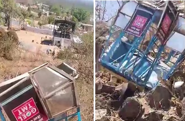 बीच रास्ते में टूटा रोपवे, नीचे गिरे केबिन