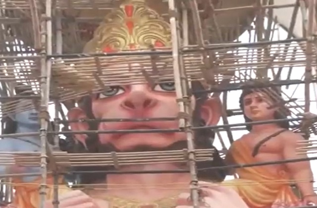 दिल्ली की गीता कॉलोनी में भगवान हनुमान की 51 फीट उंची मूर्ति का निर्माण किया जा रहा है। 22 जनवरी को राम मंदिर 'प्राण प्रतिष्ठा' के दिन ही इस मूर्ति का अनावरण किया जाएगा। वीडियो में आप देख सकते हैं कि हनुमान जी के एक कंधे पर भगवान राम और दूसरी कंधे पर लक्ष्मण जी बैठे हुए हैं। हनुमान जी अपने दोनों हाथों से अपने आराध्य को पकड़े हुए हैं। मूर्ति लगभग बनकर तैयार हो चुकी है और अब इसका फिनिशिंग काम चल रहा है।