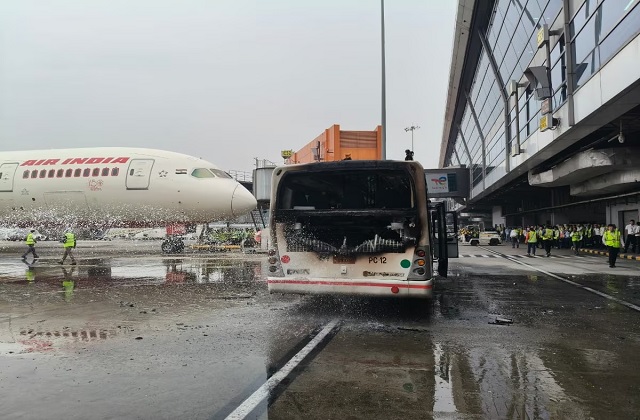 IGI एयरपोर्ट पर बड़ा हादसा, विमान के पास खड़ी बस में अचानक लगी भीषण आग