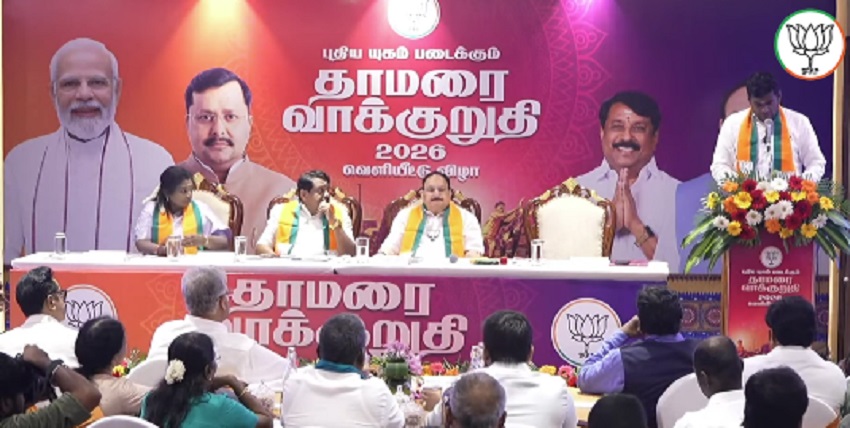 नेशनल डेस्क: भारतीय जनता पार्टी ने मंगलवार को तमिलनाडु में आगामी चुनावों के लिए अपना घोषणापत्र जारी किया। यह घोषणापत्र चेन्नई में भाजपा के वरिष्ठ नेता जेपी नड्डा द्वारा जारी किया गया। इस अवसर पर पार्टी के अन्य प्रमुख नेता, जिनमें तमिलनाडु भाजपा अध्यक्ष नैनार नागेंद्रन, भाजपा नेता के अन्नामलाई और तमिलिसाई सौंदराजन भी उपस्थित थे। घोषणापत्र में जन कल्याण को मजबूत करने, गुणवत्तापूर्ण स्वास्थ्य सेवाओं तक पहुंच में सुधार करने और राज्य के निवासियों के लिए आर्थिक स्थिरता सुनिश्चित करने पर जोर दिया गया है।