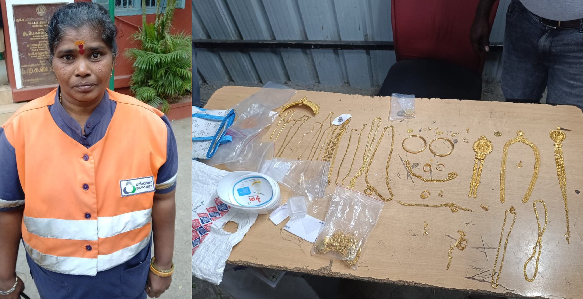 #Chennai: Corporation Cleanliness worker, S Padma returns Rs 45 lakh worth of gold jewellery she found on the road, to the police on Sunday.