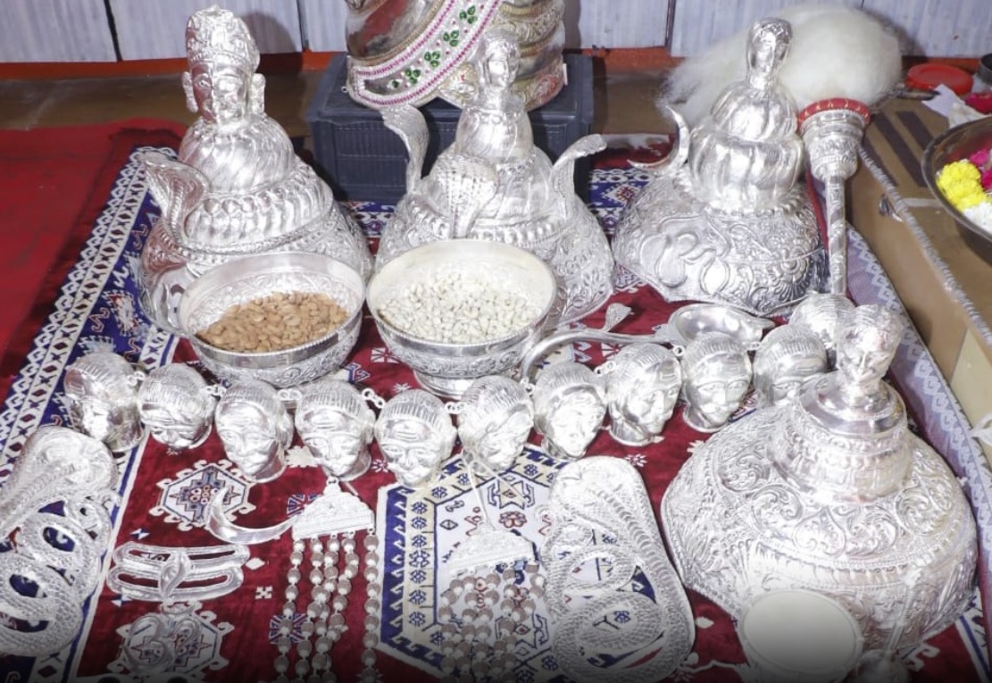 उज्जैन: श्री महाकालेश्वर मंदिर में आस्था का एक अद्भुत नजारा देखने को मिला। अहमदाबाद के रहने वाले महेश भाई भगवानदास ठाकुर ने सोमवार को मंदिर समिति को लगभग 29 किलो से अधिक वजन के चांदी के आभूषण और पूजन सामग्री भेंट की है, जिसकी बाजार में कीमत करीब 70 लाख रुपए बताई जा रही है।