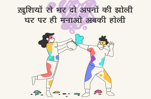 मंत्रालय की ओर से जारी तस्वीरों में कहा गया कि खुशियों से भर दो अपनी झोली, घर पर ही मनाओ अबकी होली। वहीं एक अन्य तस्वीर में लिखा है कि होली मनाने बाहर ना जाएंगे कोरोना के खतरे से खुद को और अपनों को बचाएंगे। अब होली के दिन देखना होगा कि मंत्रालय का यह प्रयास किस हद तक कामयाब रहता है।