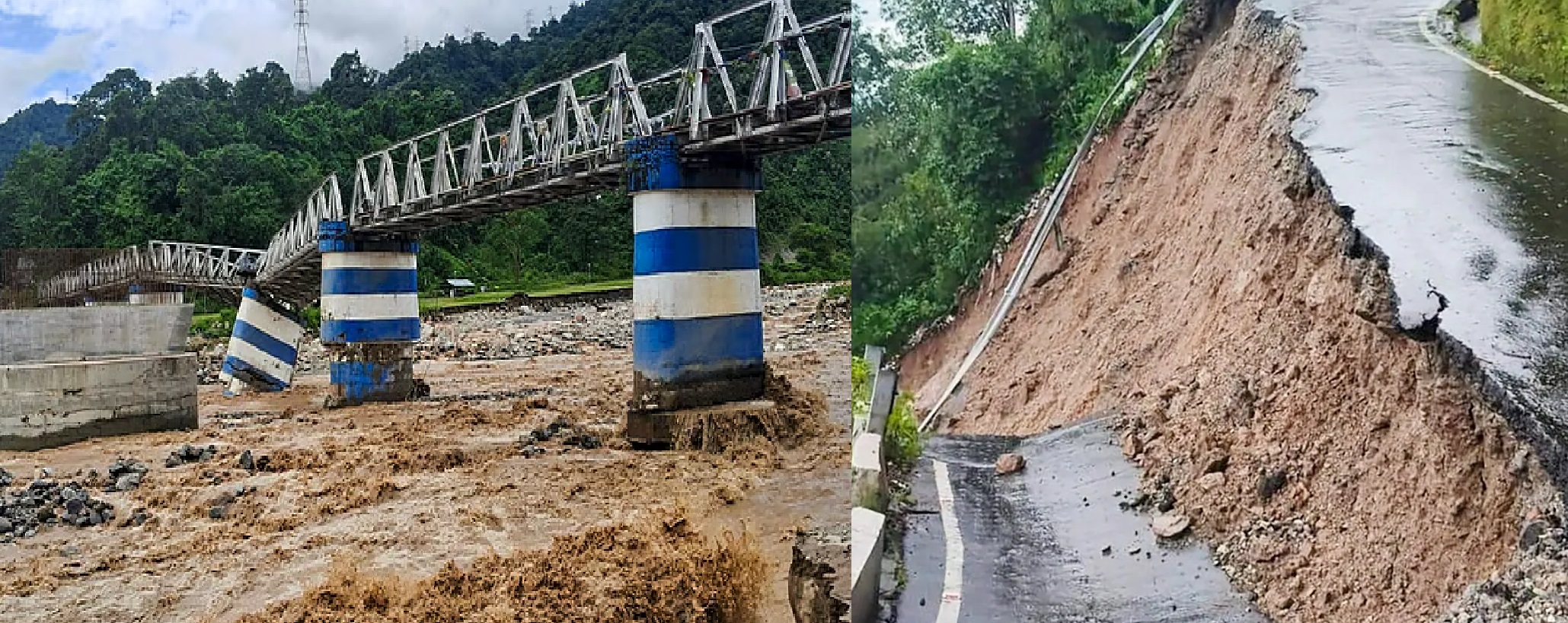 सड़कें और पुल ध्वस्त, संपर्क टूटा