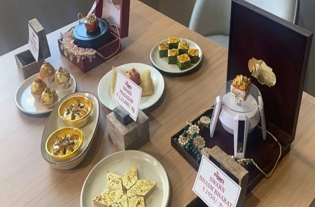 यह कोई साधारण मिठाई नहीं, बल्कि सोने और चांदी से सजी एक “रॉयल डेलिकेसी” है। इसका बेस पूरा चिलगोजा (पाइन नट्स) से तैयार किया गया है। मिठाई में केसर, स्वर्ण भस्म (खाने योग्य सोने का पाउडर) और जैन मंदिर के विशेष वर्क का इस्तेमाल किया गया है। ग्लेजिंग में भी 24 कैरेट शुद्ध स्वर्ण भस्म का प्रयोग हुआ है, जिससे इसका हर टुकड़ा चमकता है। पैकिंग भी खास रखी गई है — ज्वेलरी बॉक्स जैसी सुनहरी पैकिंग में यह मिठाई दी जाती है। इस प्रीमियम मिठाई के साथ-साथ “स्वर्ण भस्म भारत” नाम से एक और वैरिएंट भी लॉन्च किया गया है, जिसकी कीमत ₹85,000 प्रति किलो रखी गई है।