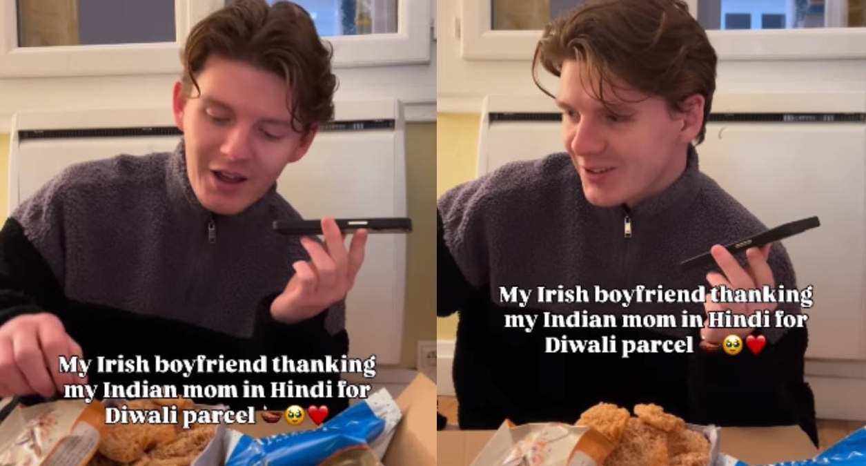 वायरल वीडियो की शुरुआत इस पंक्ति से होती है, "मेरा आयरिश बॉयफ्रेंड मेरी भारतीय मां को दिवाली गिफ्ट के लिए हिंदी में धन्यवाद देते हुए।"