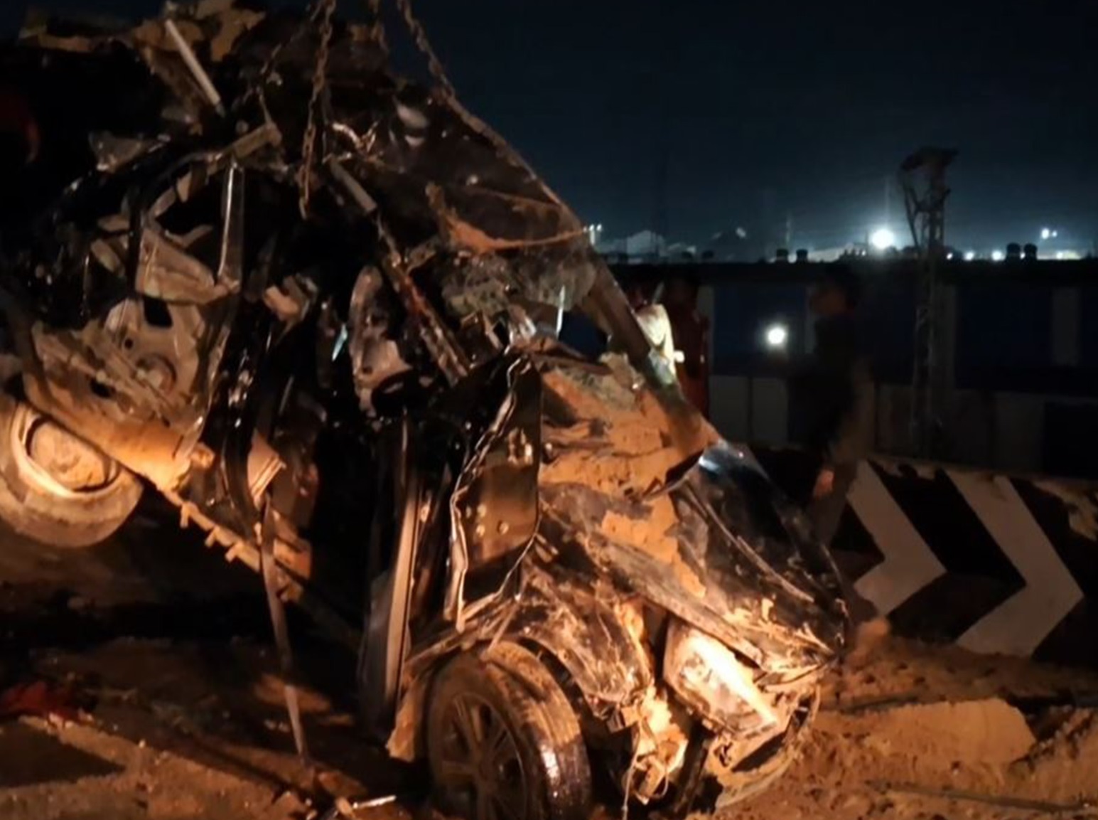 दर्दनाक सड़क हादसा: टायर फटने से कार पर पलटा बजरी से भरा ट्रक, एक ही परिवार के 4 लोगों की मौत