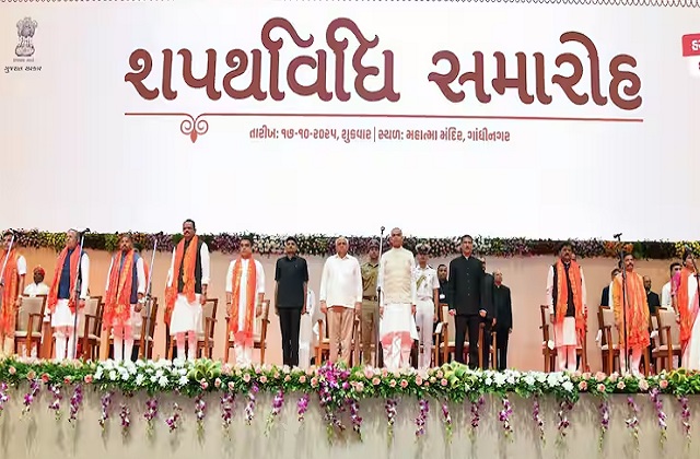 मुख्यमंत्री भूपेंद्र पटेल ने शुक्रवार (17 अक्टूबर) को 19 नए विधायकों को अपनी कैबिनेट में शामिल किया। इसके साथ ही कैबिनेट में कुल 26 सदस्य हो गए हैं। शपथ ग्रहण समारोह में राज्यपाल आचार्य देवव्रत ने सभी मंत्रियों को पद एवं गोपनीयता की शपथ दिलाई।