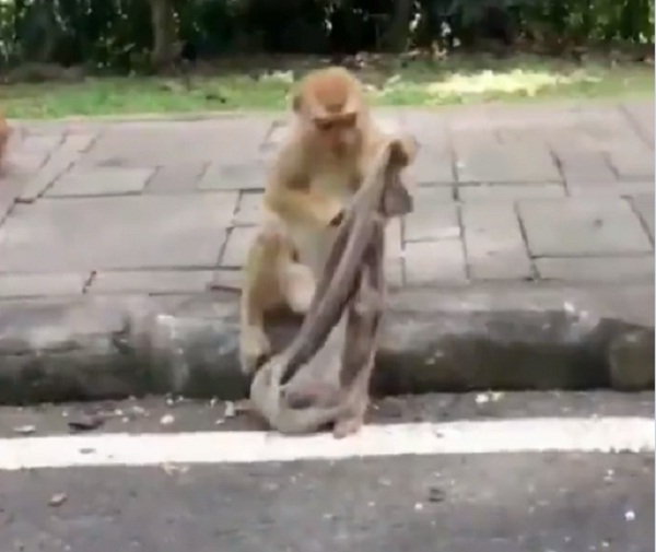 बंदर को कोरोना का ''डर'', देसी फेस मास्क पहन निकला सैर करने...देखिए VIDEO