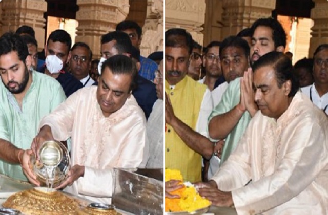 मुकेश अंबानी और आकाश अंबानी ने भगवान शिव का अभिषेक किया और प्रार्थना की। मंदिर के पुजारी ने सम्मान के तौर पर चंदन का लेप लगाकर, दुशाला उढ़ाया। मंदिर ट्रस्ट की तरफ से उनका स्वागत ट्रस्ट के अध्यक्ष पी.के. लाहिड़ी और सचिव योगेंद्रभाई देसाई ने किया।