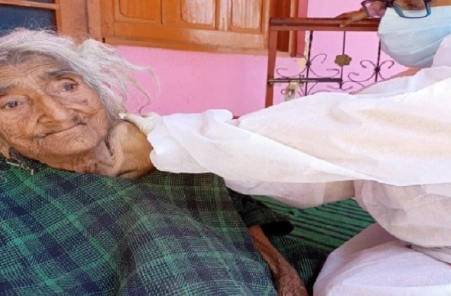 नेशनल डेस्क: कोरोना का खतरा देश में अब धीरे- धीरे अब खत्म होता दिख रहा है। ऐसे में सरकार की कोशिश कम वक्त में ज्यादा से ज्यादा लोगों को टीका लगाने की है। इसके लिए कई इलाकों में डोर टू डोर अभियान शुरू किया गया है, ताकी उन बुजुर्ग लोगों को वैक्सीन दी जा सके, जो स्वास्थ्य केंद्र पर आने में असमर्थ हैं। इसी क्रम में जम्मू-कश्मीर के बारामूला जिले में 124 साल की रेहति बेगम नाम की महिला को वैक्सीन की पहली खुराक दी गई। जम्मू कश्मीर के डिपार्टमेंट ऑफ इन्फॉर्मेशन एंड पब्लिक रिलेशंस ने इस बात की जानकारी दी।