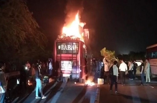 नोएडा में यात्रियों से भरी बस बनी आग का गोला