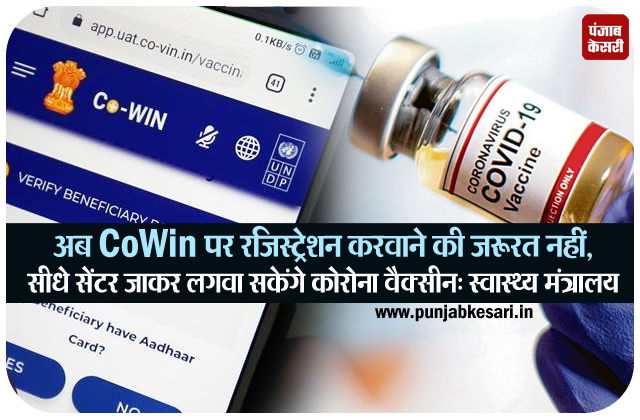 अब CoWin पर रजिस्ट्रेशन की जरूरत नहीं, सीधे सेंटर जाकर लगवा सकेंगे कोरोना वैक्सीन: स्वास्थ्य मंत्रालय