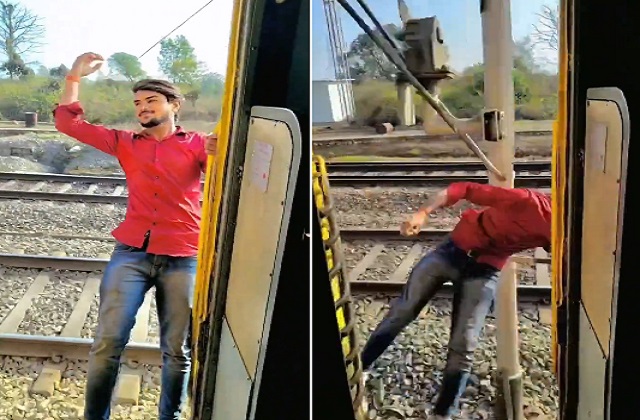 ट्रेन से बाहर लटककर कर रहा था खतरनाक स्टंट