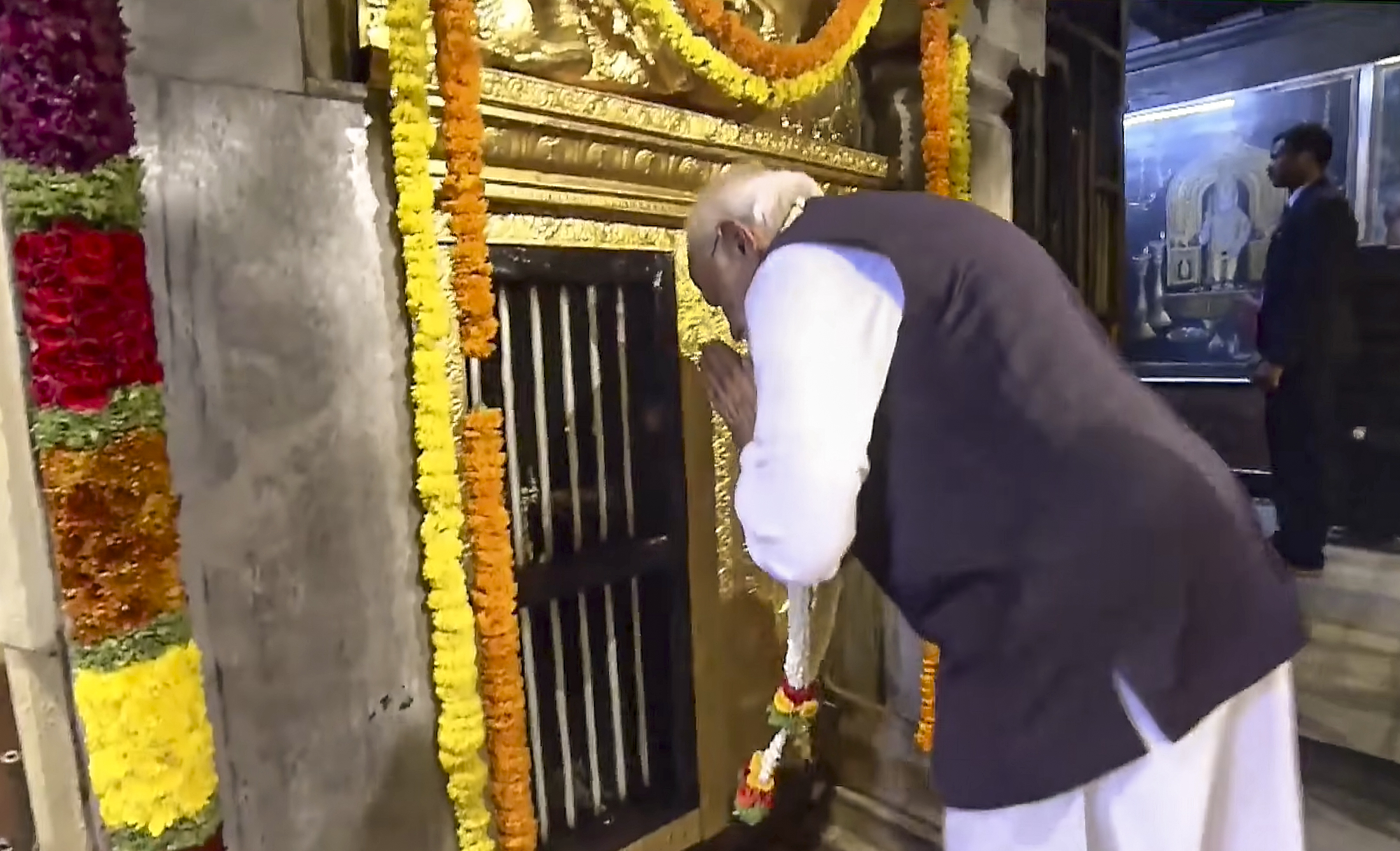 अपने दौरे के दौरान प्रधानमंत्री मोदी ने पारंपरिक रीति-रिवाजों के अनुसार मंदिर परिसर में दर्शन किए और संतों से आशीर्वाद प्राप्त किया।