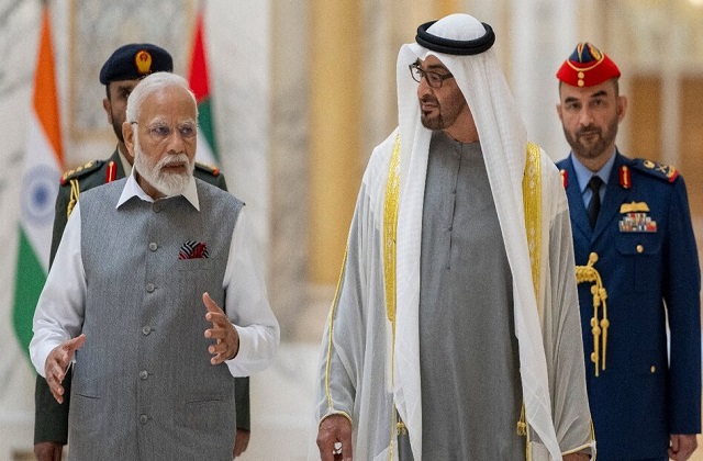 नेशनल डेस्कः भारत के प्रधानमंत्री नरेंद्र मोदी ने संयुक्त अरब अमीरात के राष्ट्रपति शेख मोहम्मद बिन जायद अल नाहयान से फोन पर बातचीत की। इस दौरान पीएम मोदी ने उन्हें ईद की अग्रिम शुभकामनाएं दीं और दोनों नेताओं के बीच कई अहम मुद्दों पर चर्चा हुई।