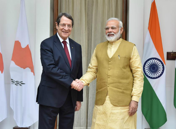 नई दिल्लीः प्रधानमंत्री नरेंद्र मोदी ने आज साइप्रस के राष्ट्रपति निकोस अनास्तासियादेस से मुलाकात की। मोदी और अनास्तासियादेस के बीच बातचीत के बाद भारत और साइप्रस ने चार समझौतों पर हस्ताक्षर किए जिसमें एक हवाई सेवा से संबंधित है। पीएम मोदी ने कहा कि भारत महत्वपूर्ण मुद्दों पर हमेशा ही साइप्रस के साथ खड़ा रहा है जिसमें उसकी संप्रभुता का मुद्दा भी शामिल है। उन्होंने कहा कि हमने द्विपक्षीय के साथ ही परस्पर हित के क्षेत्रीय एवं अंतर्राष्ट्रीय मुद्दों पर विस्तृत चर्चा की है।