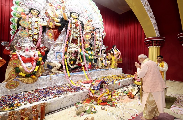 महाअष्टमी पर PM मोदी पहुँचे CR पार्क, दुर्गा पूजा पंडाल में की देवी की आराधना