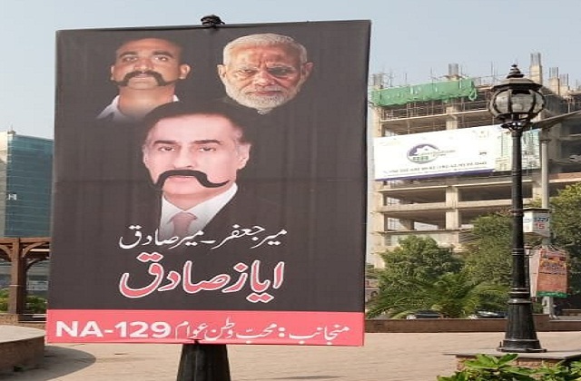 दरअसल नवाज शरीफ की पार्टी पाकिस्तान मुस्लिम लीग के नेता अयाज सादिक ने लाहौर की सड़कों में अभिनंदन और पीएम मोदी के पोस्टर चिपकाएं हैं। इन पोस्टरों में पीएमएल (एन) पार्टी के नेता अयाज सादिक को देशद्रोही करार दिया गया है। कुछ पोस्टरों में सादिक को वर्धमान के रूप में दिखाया गया है। कई पोस्टरों में उन्हें भारत समर्थक भी करार दिया गया है।