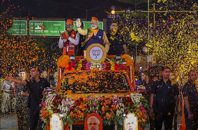 देश के सबसे स्वच्छ शहर में प्रधानमंत्री का रोड शो, ‘‘भगवा गलियारे'' से गुजरा मोदी का रथ
