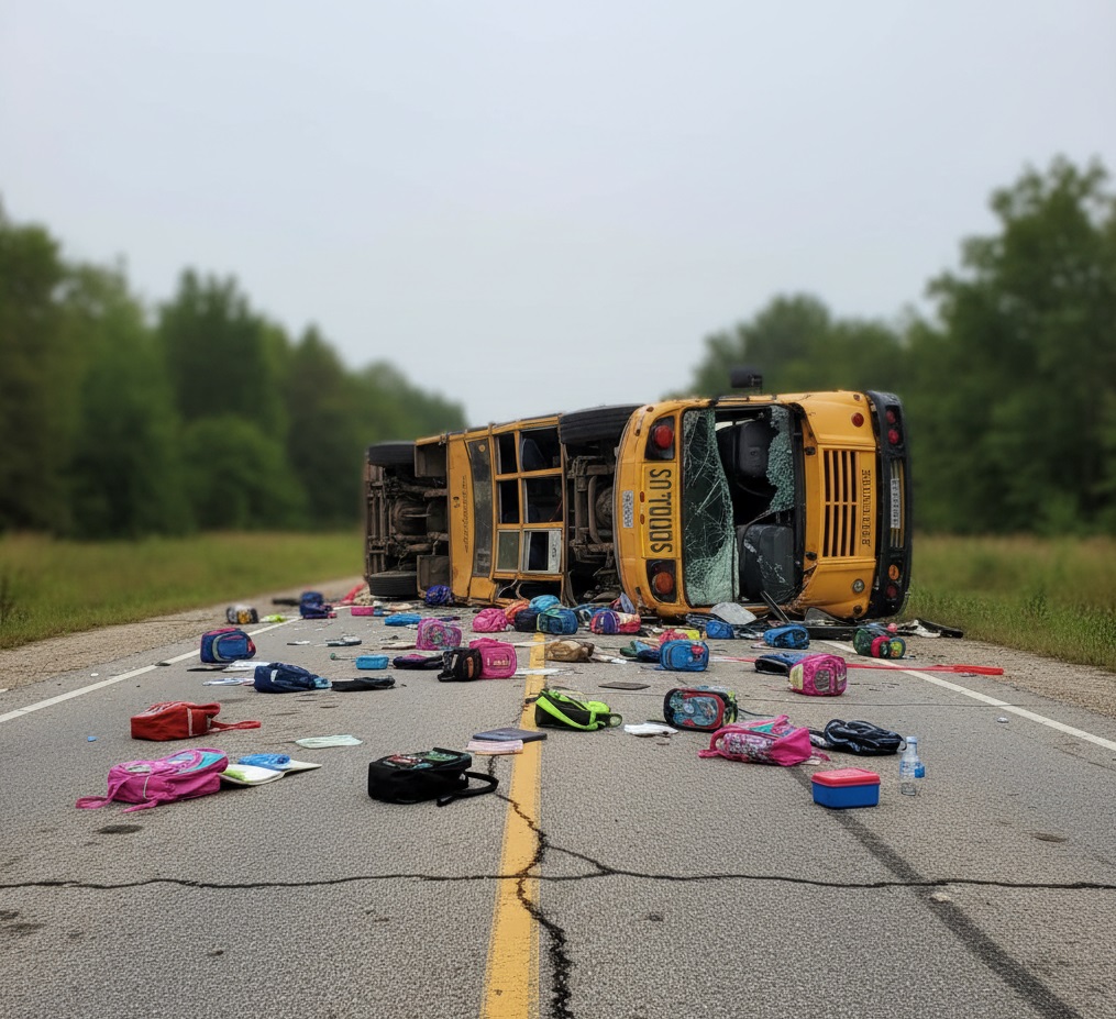 स्कूल बस पलटी! सड़क पर बिखरे बस्ते, मासूमों की चीखों से गूंजा इलाका, कई बच्चे घायल