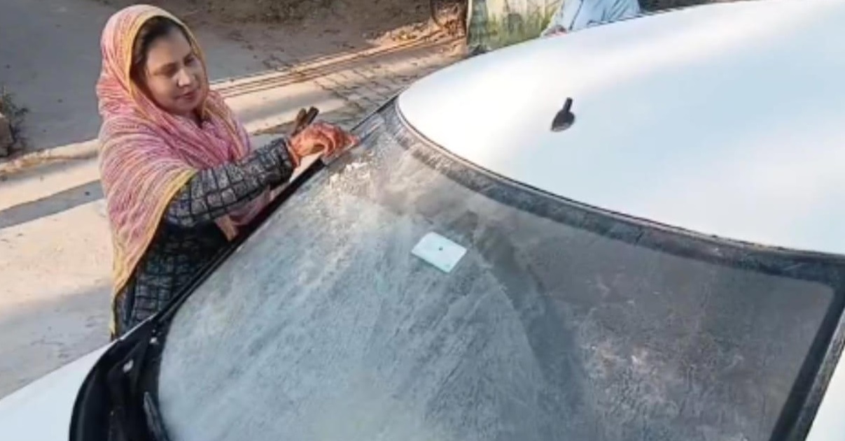 बर्फीली परतें: छोटे जलाशयों और पानी के कुंडों पर बर्फ की इतनी मोटी चादर जम गई है कि वह किसी फ्रीजर की ट्रे जैसी नजर आ रही है।