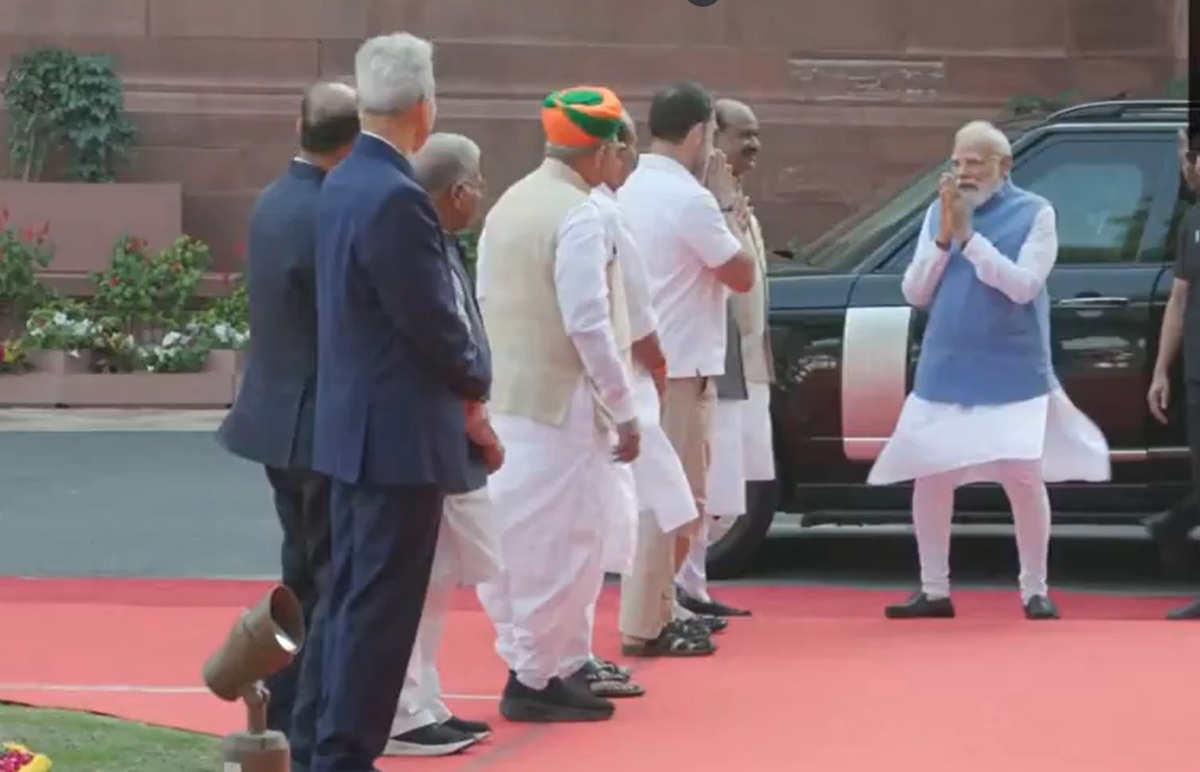 संसद भवन के 'प्रेरणा स्थल' पर ज्योतिबा फुले को श्रद्धांजलि देने के लिए कई दिग्गज नेता इक्ट्ठे हुए थे। कतार में लोकसभा अध्यक्ष ओम बिरला, जेपी नड्डा, एस जयशंकर और अर्जुन राम मेघवाल के साथ राहुल गांधी भी खड़े थे। जैसे ही प्रधानमंत्री नरेंद्र मोदी अपनी गाड़ी से उतरे, उन्होंने हाथ जोड़कर वहां मौजूद सभी सांसदों का अभिवादन स्वीकार किया।