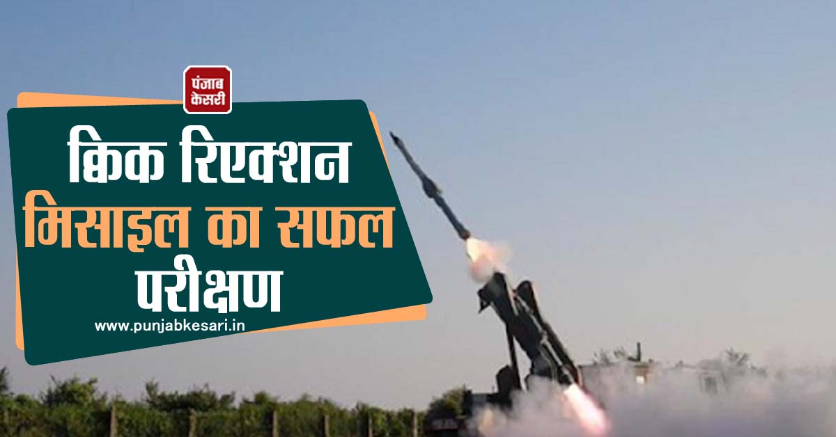 जमीन से हवा में मार करने वाली क्विक रिएक्शन मिसाइल का सफल परीक्षण