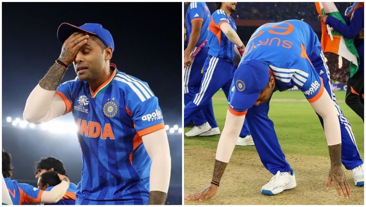 Suryakumar Yadav: अहमदाबाद के नरेंद्र मोदी स्टेडियम में जैसे ही भारत ने न्यूजीलैंड को 96 रनों से शिकस्त देकर तीसरी बार T20 World Cup 2026 की ट्रॉफी चूमी, पूरा देश जश्न में डूब गया। इस ऐतिहासिक जीत के बाद हर तरफ टीम इंडिया की गाथा की गूंज है, लेकिन एक ऐसी तस्वीर भी सामने आई जिसने करोड़ों भारतीयों को भावुक कर दिया। जीत की खुशी मनाने से पहले कप्तान सूर्यकुमार यादव सीधे पिच पर पहुंचे और वहां की मिट्टी को अपने माथे से लगाया।