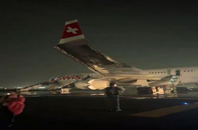 Swiss Air की फ्लाइट का इंजन टेकऑफ के दौरान फेल हो गया। ये फ्लाइट दिल्ली से ज्यूरिख जा रही थी। इंजन फेल होने के बाद लैंडिंग गियर में आग लग गई। इस फ्लाइट में 245 यात्री और क्रू मेंबर्स थे। pic.twitter.com/MdTMsmFS6i