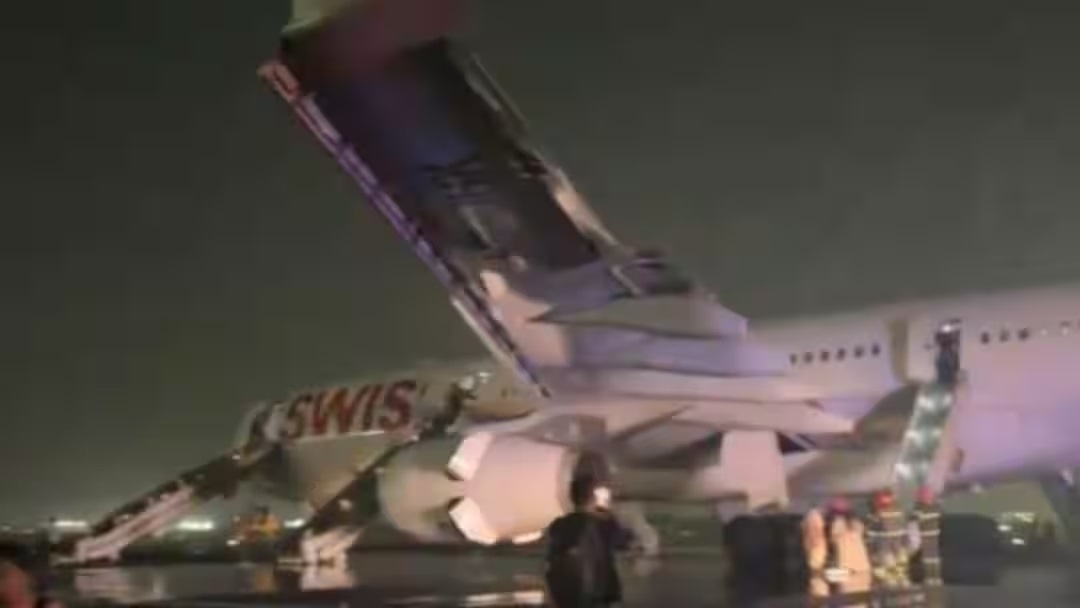 टेकऑफ दौरान स्विस विमान में लगी आग ! सवार 232 यात्रियों की फंसी जान, दिल्ली एयरपोर्ट पर मचा हड़कंप(Video)