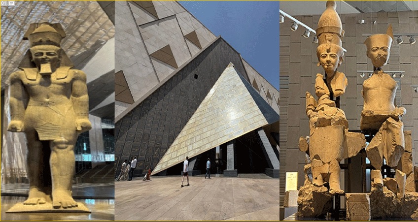 गीज़ा के पिरामिडों की पृष्ठभूमि में चमकता यह भव्य म्यूज़ियम इस संदेश को पुनः जीवंत करता है —