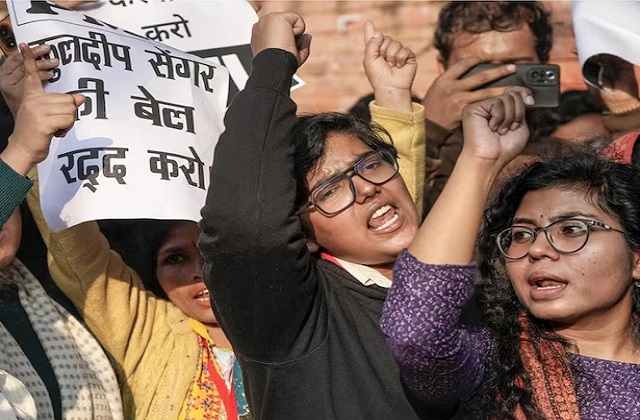 नेशनल डेस्क: उन्नाव के 2017 के दुष्कर्म मामले की पीड़िता, उसके परिवार और कार्यकर्ताओं ने भारतीय जनता पार्टी (भाजपा) के पूर्व विधायक कुलदीप सिंह सेंगर की उम्रकैद की सजा दिल्ली उच्च न्यायालय द्वारा निलंबित किए जाने के खिलाफ रविवार को दिल्ली के जंतर-मंतर पर विरोध प्रदर्शन किया। अधिकारियों से सख्त जवाबदेही की मांग करते हुए, विरोध प्रदर्शन के दौरान मौजूद पीड़िता ने कहा कि उनके परिवार को और सुरक्षा प्रदान की जानी चाहिए। उन्होंने कहा, "मैं मुख्यमंत्री से हमें सुरक्षा देने का अनुरोध कर रही हूं। ये लोग शक्तिशाली हैं। कृपया अपनी बेटी को बचाएं। मेरे पति को नौकरी से निकाल दिया गया था। हम बेरोजगार हैं, हम कहां जाएंगे?" प्रदर्शनकारियों ने दोषी के प्रति दिखाई गई कथित अनुचित नरमी के खिलाफ नारे लगाए और तर्क दिया कि अब तक की गई कार्रवाई सार्वजनिक उम्मीदों से कम रही है। पीड़िता की मां ने कहा कि उन्हें उच्चतम न्यायालय पर भरोसा है और उम्मीद है कि इस मामले में न्याय मिलेगा।
