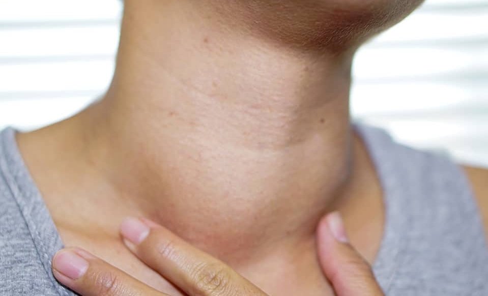 गर्दन में कोई गांठ या सूजन महसूस होना।