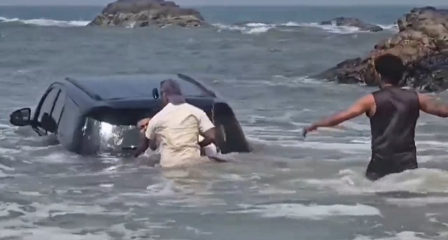 जानकारी के अनुसार, गुजरात से कुछ लोग गोवा घूमने के लिए आए थे। ये लोग अपनी SUV कार के साथ वागाटोर बीच पहुंचे थे। आमतौर पर लोग बीच पर समुद्र का आनंद लेते हैं, रेत पर बैठते हैं या पानी की हल्की लहरों का मजा लेते हैं, लेकिन इन लोगों ने इसके उलट काम किया।