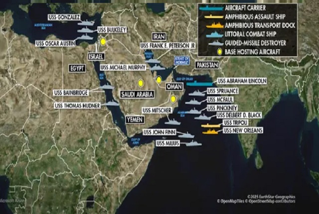 इंटर नेशनल डेस्क: ईरान के साथ शांति बातचीत फेल होने के बाद ट्रंप ने होर्मुज जलडमरूमध्य ब्लॉकेड का ऑर्डर दिया। इस इलाके में U.S. के जहाजों के एक मैप में सोमवार सुबह तक कम से कम 17 जहाज तैनात दिखे। US सेंट्रल कमांड ने सोमवार को पहले नाविकों को एक नोटिस में ब्लॉकेड लगाने के प्लान की घोषणा की।