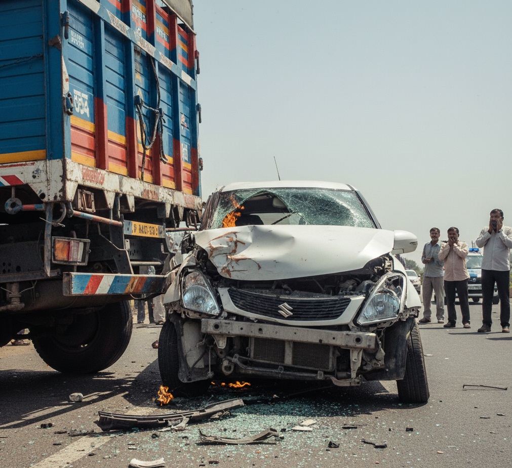 मातम में बदलीं शादी की खुशियां, कैंटर से टकराई बेकाबू कार, 4 दोस्तों की मौके पर मौत, शराब की बोतलें बरामद