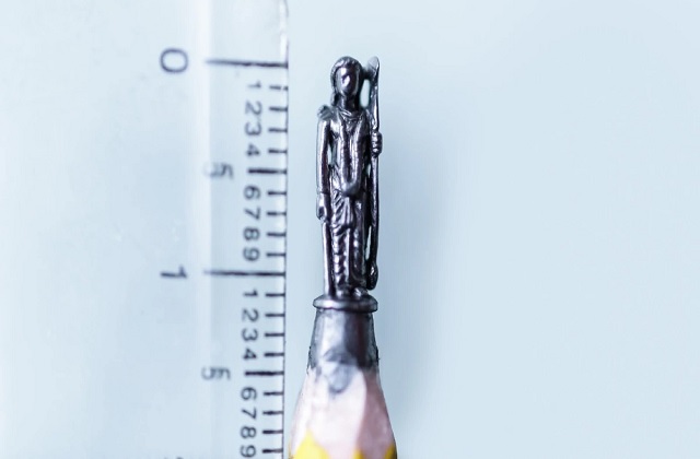 इस आर्टिस्ट का नाम पहले से ही गिनीज बुक ऑफ वलर्ड रिकॉर्ड में दर्ज है। इस मूर्ति को बनाने में 5 दिन का समय लगा और लंबाई 1.3 सेंटीमीटर है। पेंसिल की नोक पर तराशी गई इस मूर्ति में भगवान राम के हाथ में धनुष और दूसरे हाथ में बाण दिखाया गया है। यह मूर्ति राम म्यूजियम में रखने के लिए राम ट्रस्ट को भेंट की जाएगी ताकि भगवान राम के भक्त इसके दर्शन कर सकें।