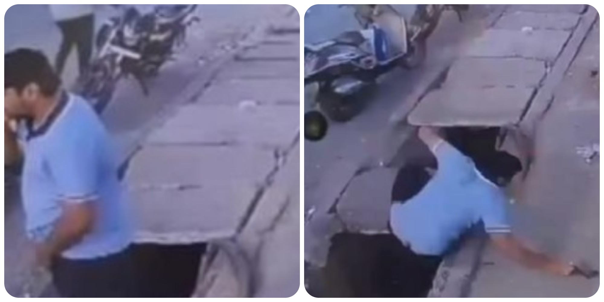 नाले में गिरने की यह घटना सोशल मीडिया पर तेज़ी से वायरल हो रही है। इस घटना के वायरल CCTV फुटेज में देखा जा सकता है कि निखिल गुलानी नाम का एक व्यक्ति अपनी दुकान के बाहर है। वह चलते हुए फ़ोन पर बात कर रहा था। जैसे ही उसने बात करते हुए नाले के ढक्कन पर कदम रखा, ढक्कन अचानक दो टुकड़ों में टूट गया। इसी दौरान, निखिल बात करते-करते नाले में गिर जाता है और उसका फ़ोन हाथ से छूटकर गिर जाता है। जैसे ही यह घटना हुई, आस-पास से गुज़र रहे लोगों और दूसरे दुकानदारों ने तुरंत उसकी मदद की।