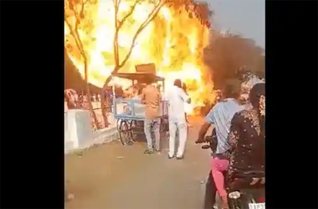 सोशल मीडिया में वायरल हो रहे वीडियो में आप देखेंगे कि घटना वाली जगह पर खड़े लोग ये देखकर शॉक्ड हैं कि पहले तो बाइक में आग लगी और फिर उसका पैट्रोल टैंक ब्लास्ट हो गया। हालांकि वहां खड़े लोग बाइक पर पानी डालकर आग को काबू करने में सफल रहे।